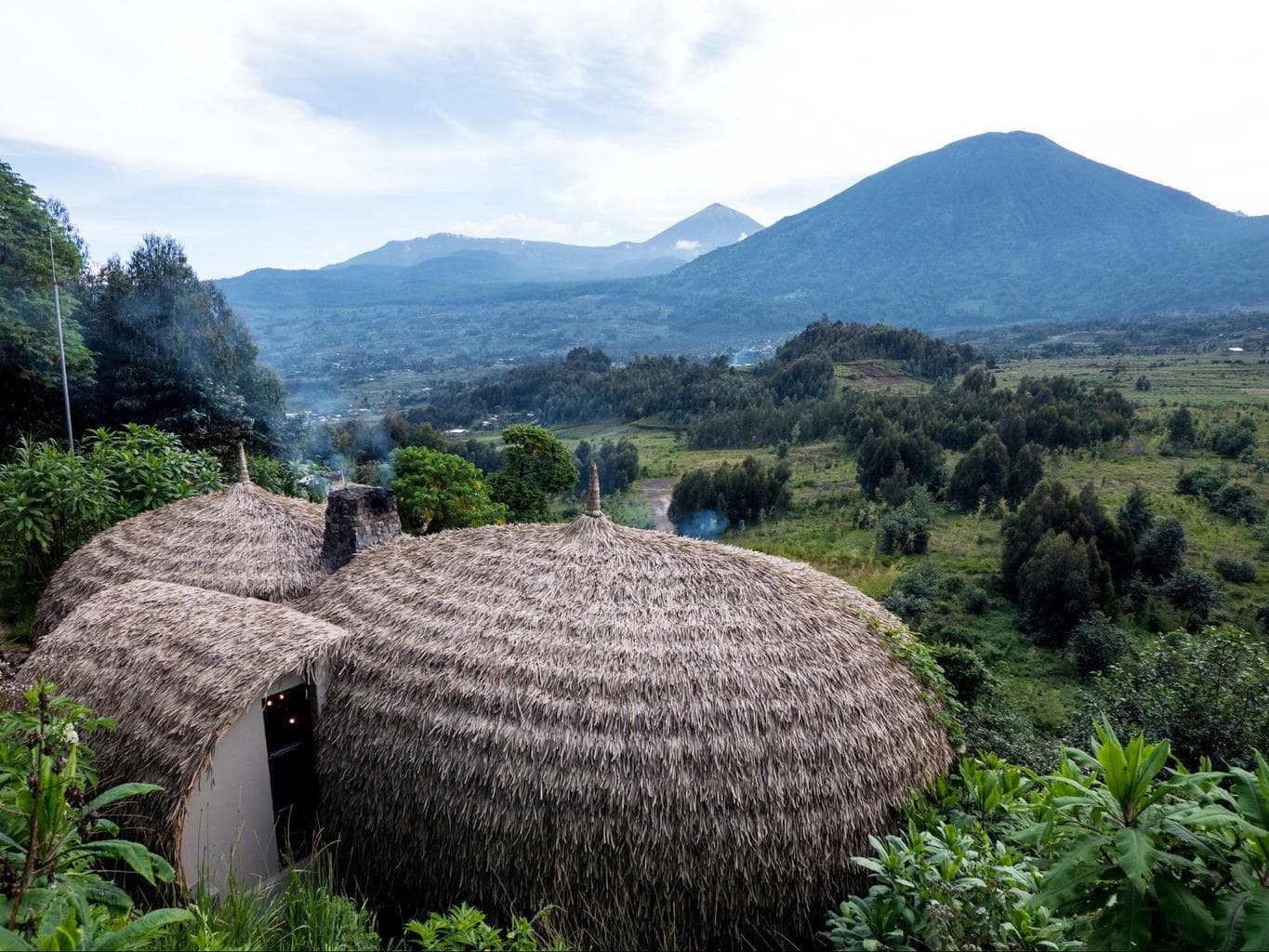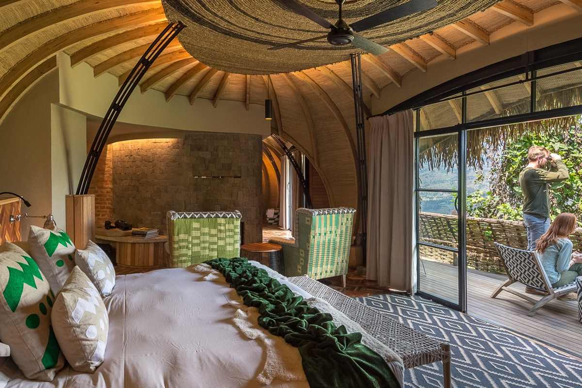 From your sumptuous six (6) villas on the hillside slopes of an eroded volcanic crater, gaze through a curtain of mist at two extinct volcanoes, Bisoke and Karisimbi, the lodge offers best spectacular views from its six (6) appointed designed lodge chalets in traditional Rwandan royalty. Best location for a holistic gorilla experience in Rwanda, Bisate lodge is appointed as a Premier with high standards of accommodation and service created to the most exclusive to the guests staying at this luxury lodge. It is one of the only sustainable luxury offerings in the area with spectacular views of the brooding Bisoke, Karisimbi and Mikeno Volcanoes.