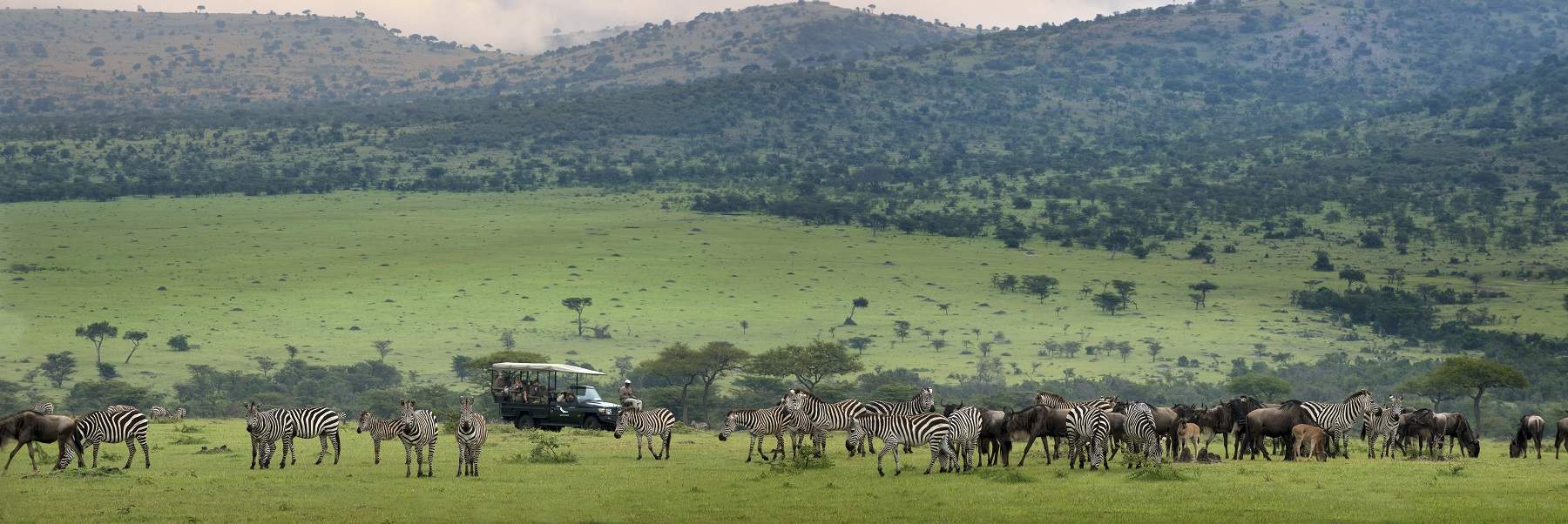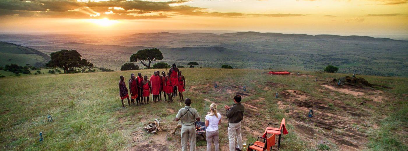 Kleins Camp Guests admire breath-taking views of the valley which is home to large herds of wildebeest and zebra that forms annual Serengeti famous Great Migration safari highlight.