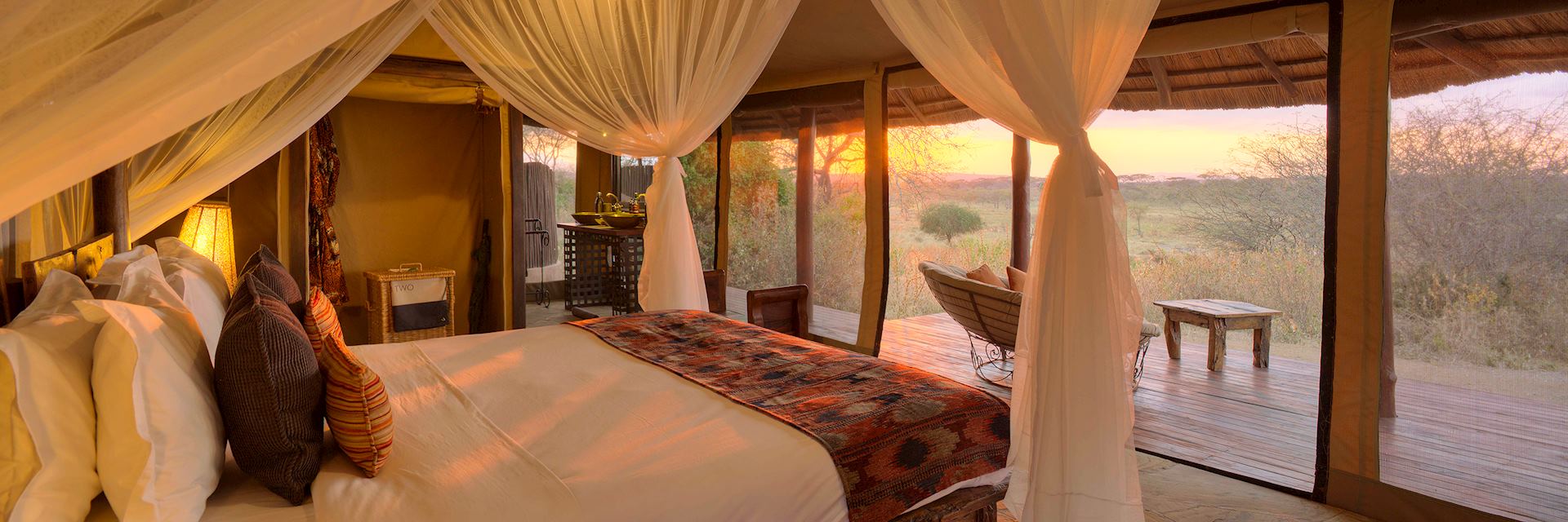 It’s located within the beautiful and wildlife-rich Silale Swamps, where you’ll find stunning wildflowers and an impressive variety of wildlife. Savour a sense of wilderness created by the exclusive location of the camp and enjoy the comforts of home while immersing yourself in the African landscapes. During the dry season, Tarangire is home to the highest number of mammals in the country, including wild dog, big cats, elephant, buffalo, kudu, and over 500 bird species. The Silale Swamps provide a permanent water source throughout the dry months, and Oliver’s Camp is in prime position to enjoy the wildlife display it delivers.