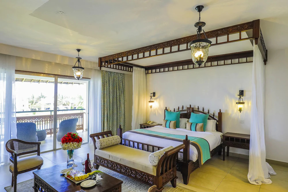 Located in Zanzibar City near the beach, surrounded by beautiful gardens, pristine white sandy beaches and picturesque views, the Beach resort hosts the impeccable luxury accommodation with each room completed with an ensuite bathroom equipped with a hairdryer. Zanzibar Beach Resort incorporates a blend of contemporary and Afro-Arabic designs in its architecture. The Resort hosts wedding ceremony commemorated as your new life together in an unforgettable fashion such as;